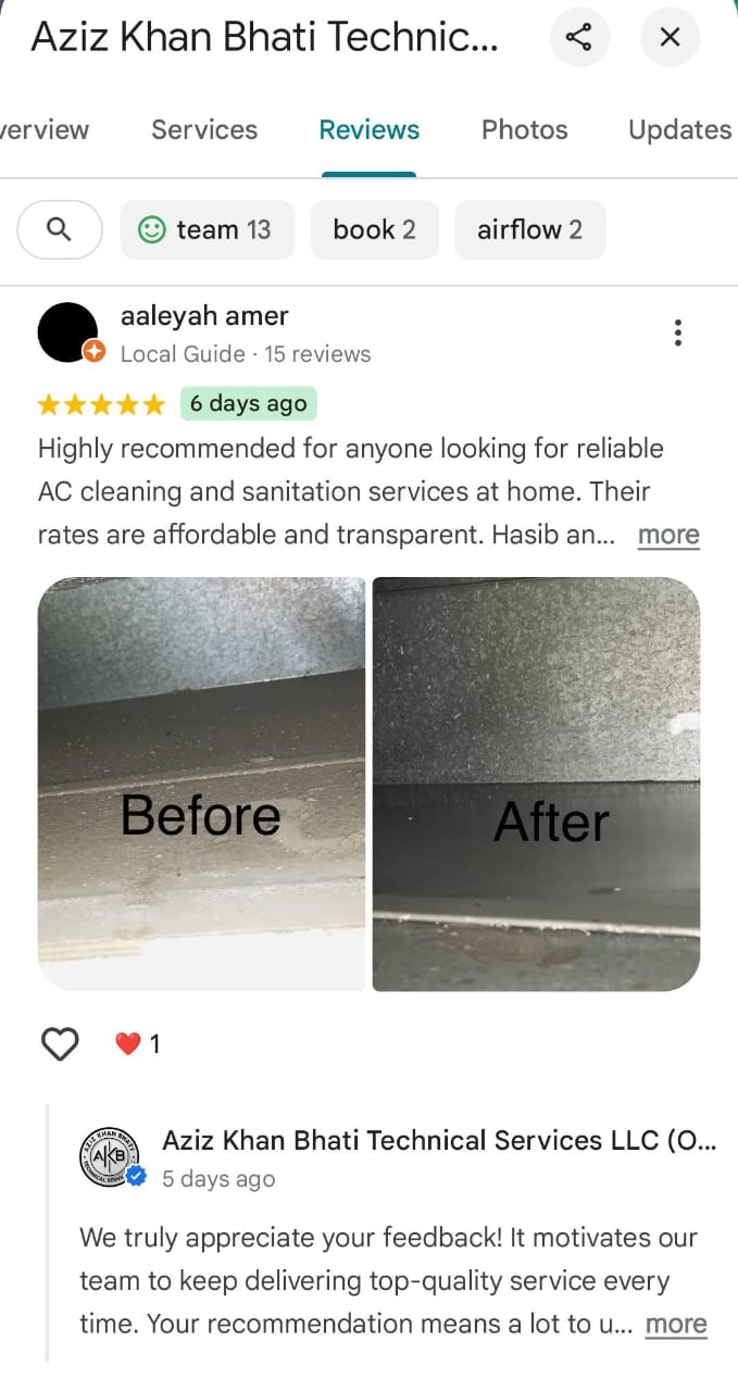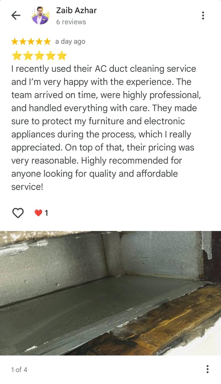 Humidity and Moisture – In Dubai’s climate, humidity from showers, cooking, or even AC condensation creates moisture inside the ducts. This moisture becomes a perfect breeding ground for mold and fungus.